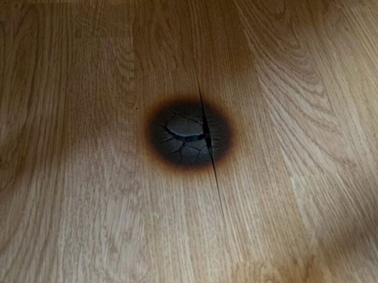 Burn marks on wooden floors, like the one shown in the image, can be both unsightly and concerning. Whether caused by a dropped hot object or another mishap, they require prompt attention to restore the floor’s appearance and prevent further damage. Here’s a step-by-step guide on how to handle this issue effectively:
