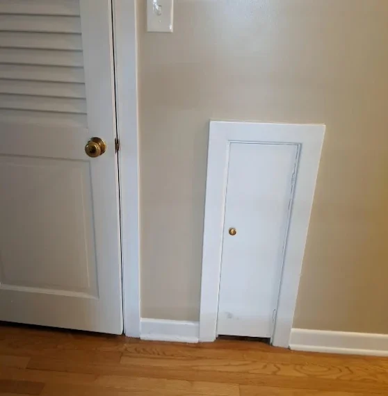 A frequent misunderstanding about these little doors is that they were fashioned as hidden pathways or hiding places. Although the truth is somewhat more ordinary, the concept of secret rooms and underground operations gives these ancient homes an aura of mystique. Another common misconception is that this door conceals a space for stowing bags. It would be logical to put it next to a closet. It seems like the space isn’t big enough to accommodate a large luggage, particularly when the previous ones didn’t have wheels. Linen storage and ironing board space are two more often mentioned alternatives. However, in reality, the little doors had a functional purpose in the 1950s and 1960s and were not intended for clandestine reasons.