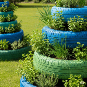 Stack three painted tires in a pyramid, fill with soil, and plant different herbs in each level. It becomes a vertical herb spiral with flair.