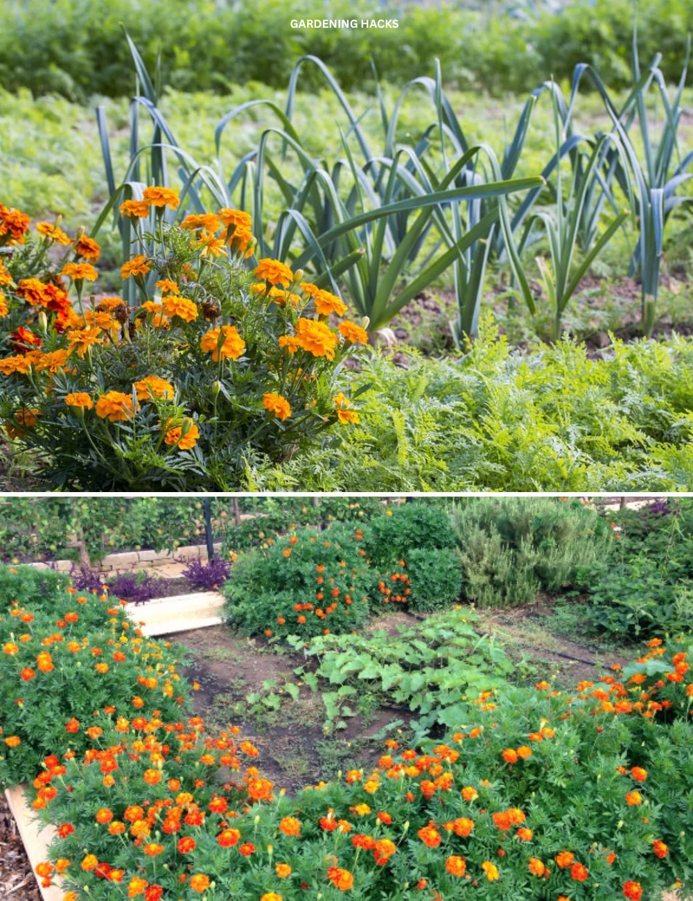 Marigolds add a burst of color to your garden with their vibrant yellow, orange, and red flowers. This not only enhances the visual appeal but also makes it easier to spot pests and issues among your vegetables.
