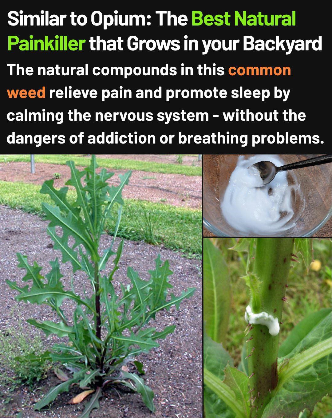 The sap contains compounds—lactucin and lactucopicrin—that interact with the central nervous system. These compounds produce calming, pain‑easing effects similar to those of opioids but without the risk of addiction.